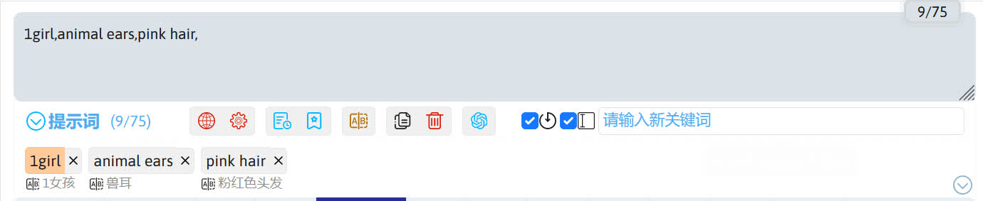 回车后中文被输入到提示词框中并自动翻译成英文。