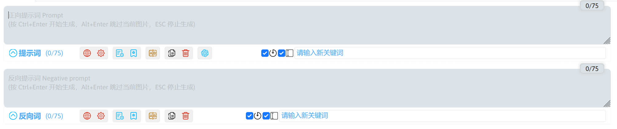 右侧的小框是 sd-webui-prompt-all-in-one 扩展的输入翻译框,这里可以输入中文并由扩展翻译成英文。