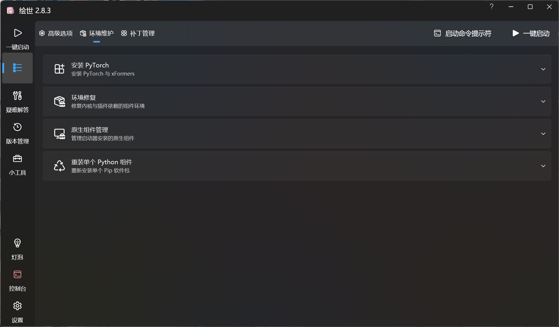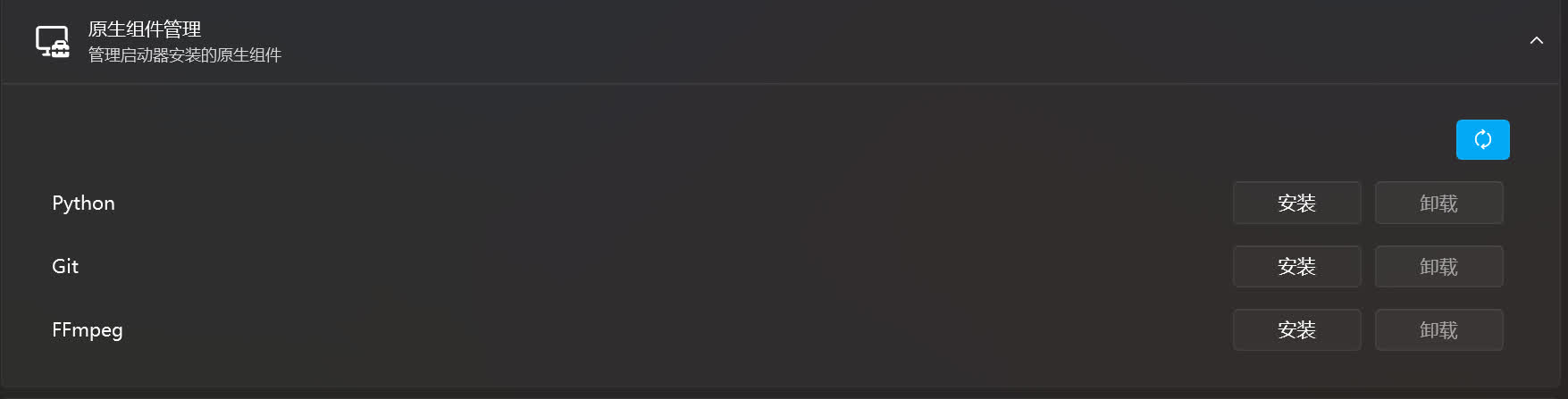 您如果是整合包用户,除非您要删除整合包内的 Python 和 Git,使用绘世启动器的原生组件管理重建新的 Python 和 Git,否则不要安装原生组件管理里的 Python 和 GIt。